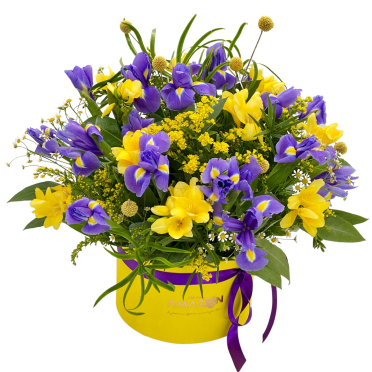 11. Frezii si irisi in cutie pentru aniversarea zilei de nastere