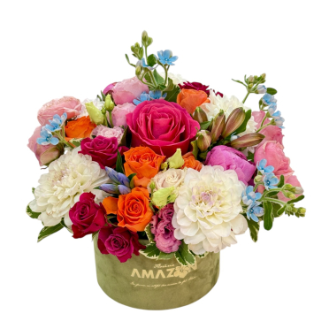 9. Flori in cutie cu bujori, hortensie, trandafiri, zi de nastere