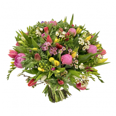 - Buchet aniversar de primavara din frezii lalele anemone si bujori 65 fire999,00 LeiLivrare: Bucuresti si Orase mari