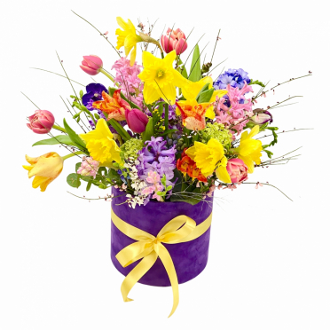 - Aranjament floral in cutie catifea mov zambile lalele frezii multicolore417,00 LeiLivrare: Bucuresti si Orase mari