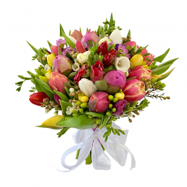 - Buchet flori de primavara din frezii lalele anemone si bujori 33 fire467,00 LeiLivrare: Bucuresti si Orase mari