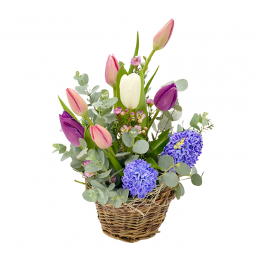 - Buchete din flori de primavara zambile si lalele roz si mov390,00 LeiLivrare: Bucuresti si Orase mari