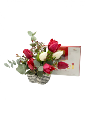 - Aranjament floral vas de ceramica Maini cu lalele rosii si albe ciocolata Merci278,00 LeiLivrare: Bucuresti si Ilfov